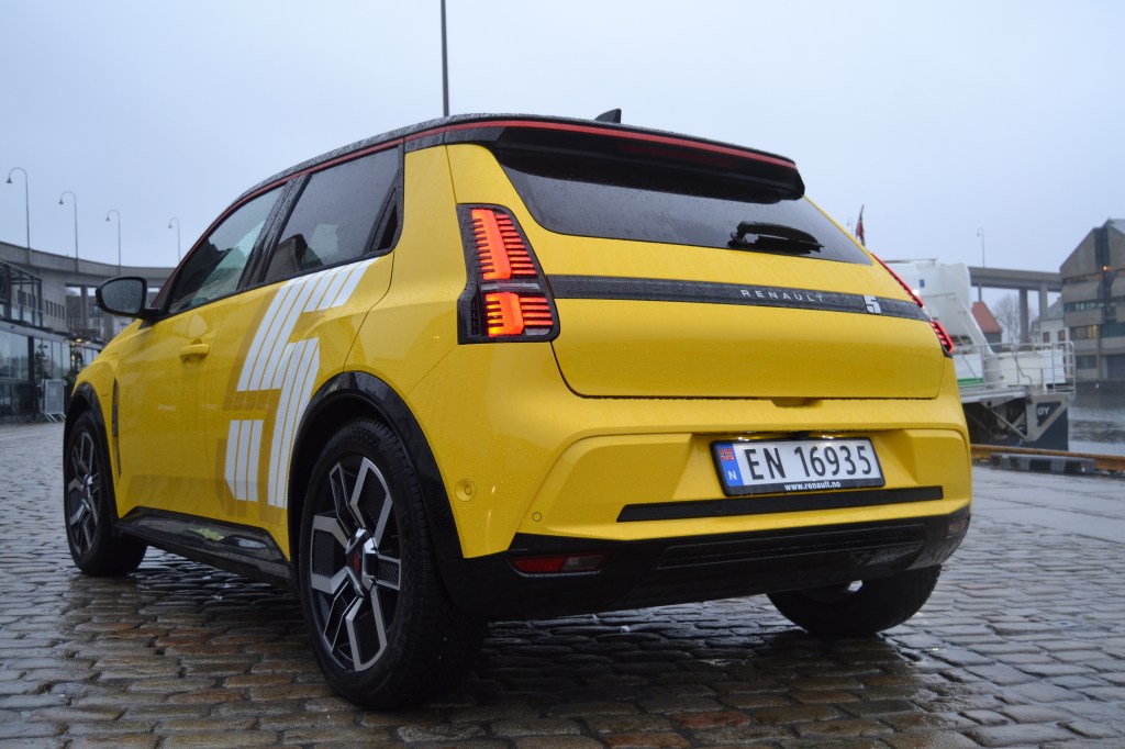 Luftinntaket på panseret har fått lov til å bli et 5-tall som fungerer som ladeindikator, venstre frontlykt gir deg gleden av at bilen blunker til deg hver gang du nærmer deg eller går fra bilen, baklyktene er skremmende like de originale, og hele silhuetten av bilen er bare en litt større, men absolutt ikke oppblåst utgave, av «originalen».
