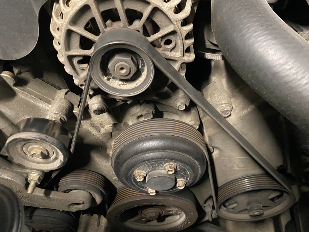 Siden vi ikke hadde peiling i utgangspunktet, googlet vi «How to change serpentinebelt on 1998 Ford Crown Victoria», og fikk en guide på dette:
