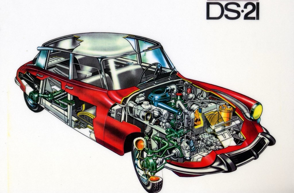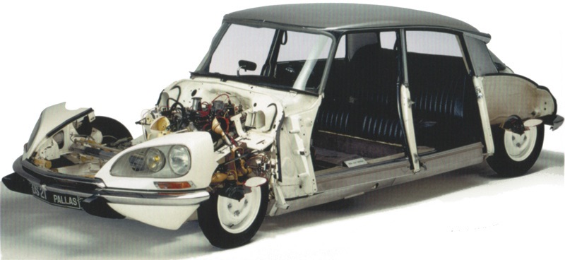 Citroen DS var særdeles egen tvers igjennom med blant annet skjermer som enkelt kunne demonteres og frontlykter som svingte med forhjulene.