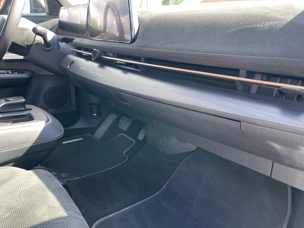Det eneste jeg ikke helt forstår, er det elektriske «hemmelige» rommet midt under dashbordet, samt muligheten til å justere hele midtkonsollen elektrisk frem og tilbake. Men det har sikkert noe for seg.
