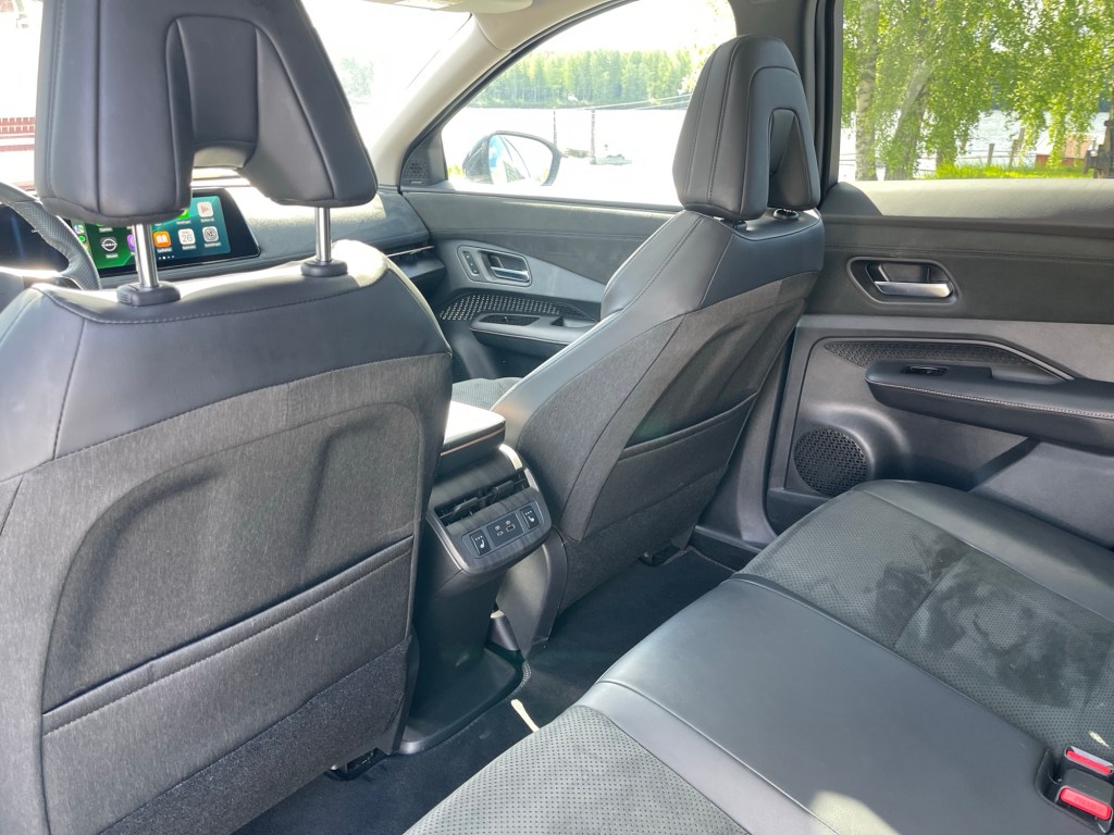 Setene er behagelige og passe faste. Dog kunne de med fordel vært enda mer bøtteformede og sportslige etter min smak, men takk til Nissan for at noen har tenkt og endelig laget en flyttbar korsryggstøtte som kjennes skikkelig! Det er deilig på lengre turer for slitne rygger.