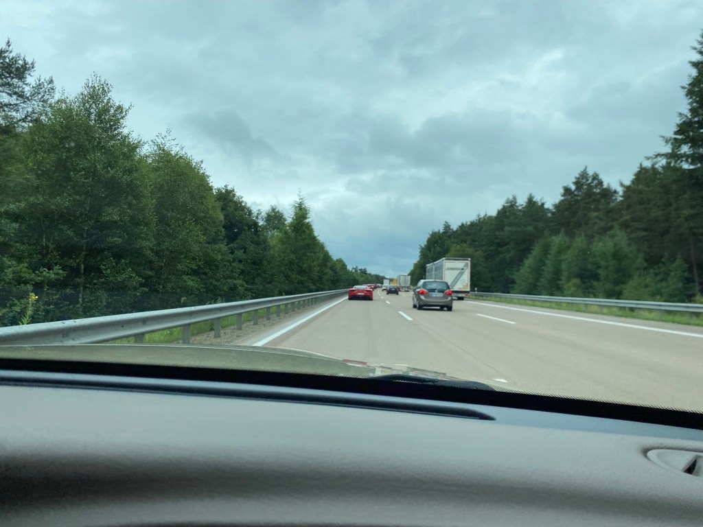 Ute på Autobahn tenker du kanskje fri fart? I teorien ja… men vi opplevde en del kø pga veiarbeid og dessverre noen ulykker som la til noen ekstra timer i reisetiden.