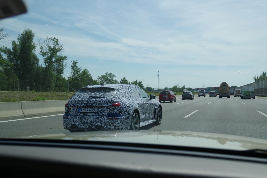 Overrasket ble vi imidlertid allerede på motorveien i München. Her dukket det plutselig opp 3 maskerte biler. Audi-logoene var ikke veldig godt gjemt, og særlig hemmelig kan ikke disse bilene være. Men artig uansett å observere nye modeller som skal lanseres.