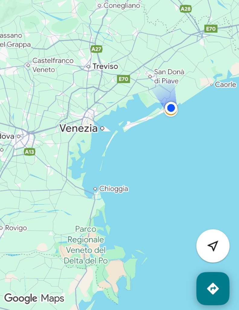 Byen heter Jesolo og ligger øst for Venezia. Ca 1 time med bil + båtreisen inn.